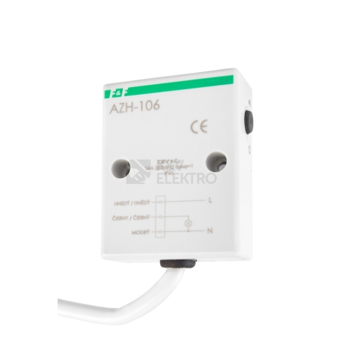 Spínač soumrakový FiF AZH-106 - rozsah nastavení 2-1000lux, jmenovitý proud 16A, jmenovité napětí 230V, krytí IP65, barva šedá, montáž na povrch, kabel o délce 0,8m