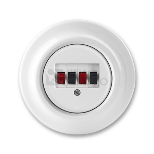 Decento® | Sdělovací a datová technika | Zásuvka reproduktorová stereofonní | bílá || Bezšroubové připojení vodičů od reproduktoru (4 odpružené svorky). Svorky pro připojení vodičů od zesilovače jsou šroubové. Pólování vodičů je barevně značeno. Kryt je vyroben z plastu. Při instalaci více přístrojů ve vodorovném nebo svislém směru musí být rozteč středů instalačních krabic alespoň 90 mm.