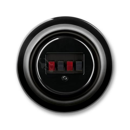 Decento® | Sdělovací a datová technika | Zásuvka reproduktorová stereofonní | černá || Bezšroubové připojení vodičů od reproduktoru (4 odpružené svorky). Svorky pro připojení vodičů od zesilovače jsou šroubové. Pólování vodičů je barevně značeno. Kryt je vyroben z plastu. Při instalaci více přístrojů ve vodorovném nebo svislém směru musí být rozteč středů instalačních krabic alespoň 90 mm.