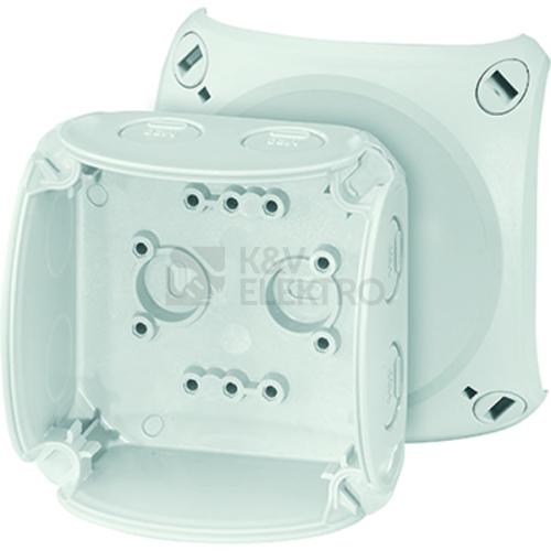 Kabelová krabicová rozvodka z vysoce kvalitního termoplastu pro nechráněnou instalaci ve venkovním prostředí nebo pro nástěnné aplikace v budovách. Odolné proti povětrnostním vlivům, jako například UV záření ze slunečního světla, chráněno proti dešťové vodě, teplotně stálé a nárazuvzdorné. Upevnění víka pomocí rychlouzávěrů. S vnějšími (stěnovými) úchyty. Odolné proti mořské vodě pro použití v přímořských oblastech. Se schválením pro instalaci na lodích. Kabelová krabicová rozvodka bez svorek. Kabelový vstup přes metrické předlisy. Montážní kabelové vývodky součástí příslušenství. S páskem pro uchycení víka.