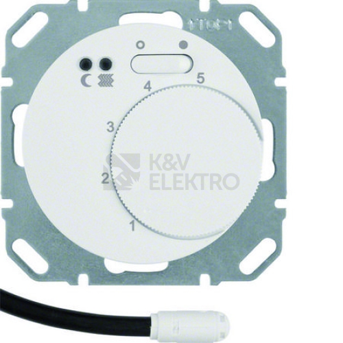 Regulátor, podlahového vytápění se spínacím kontaktem, centrálním dílem a vypínačem, Berker R.1/R.3, bílá, lesk