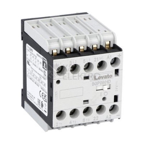 Třípólový ministykač, jmenovitý proud IE (AC3)=9A, cívka 110VDC, 1V pomocný kontakt, zadní pájecí svorky