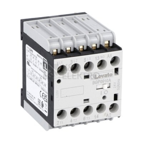 Třípólový ministykač, jmenovitý proud IE (AC3)=9A, cívka 24VAC, 1Z pomocný kontakt, zadní pájecí svorky