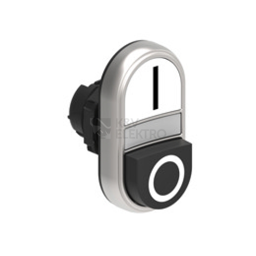 Dvoutlačítková plastová hlavice, bílá/černá se symboly I-O, 1 lícující a 1 vystouplé tlačítko, prosvětlený střed, obě tlačítka s návratem
