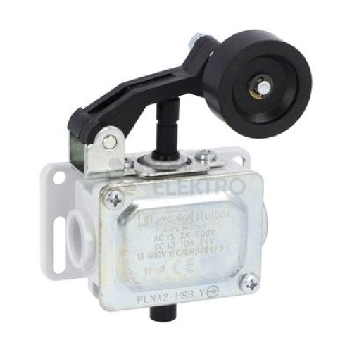 Kovové koncové spínače, páka s kladkou vodorovné najíždění s osovým nastavením, kontakty 2V, krytí IP65