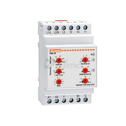 Proudová ochranná relé, Jednofázová a třífázová, Maximální proud (AC) a minimální COSΦ - zpožděné vybavení, Ztráta fáze a nesprávný sled fází, Napájecí napětí (AC), Automatický nebo ruční reset, 380…415V AC, Jmenovitý proud 5 nebo 16 A