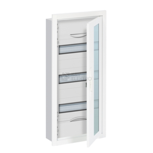 Rozvodnice zapuštěná IP31/36 modulů, Plechová, Průhledná dvířka, RAL 9016 bílá, rozteč lišt 150mm