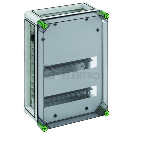 Rozvaděč s dodatečným propojovacím prostorem-průmyslová kvalita -, 28 modulů, 2 řady, Bez PE/N svorek, Krycí a popisovací pásky, 3 x spojovací prvek (GGV), s transparentním víkem, Rozměry: 320 x 440 x 179mm