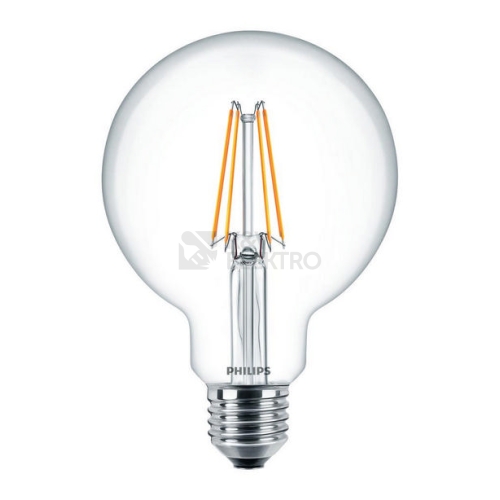 LED žárovka Philips FILAMENT Classic LEDGLOBE Retro žárovka Philips má výkon 6W a patici E27. Je vhodnou náhradou za klasickou 60W žárovku. Má zajímavý vzhled a je možné použít jí do svítidel, kde bude vidět. Barva světla, kterou vyzařuje je teplá bílá a její požití se doporučuje v místnostech, kde trávíte hodně času.