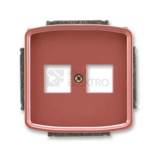 Kryt zásuvky komunikační s plochým designem S upevňovacím třmenem. Pro upevnění dvou komunikačních zásuvek typu Modular-Jack (keystone), záslepek nebo reproduktorových svorek bez použití nosné masky. Rozměry otvorů: 19,4 × 14,8 mm Design: Tango Barva: vřesová červená