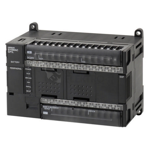 CP1L CPU jednotka, vstupní body: 24, výstupní body: 16, rozšiřitelné až na 160 I/O bodů, programová kapacita: 10 kKroků, kapacita datové paměti: 32 kSlov, rychlost provádění logických operací: 0,55 us, napájení: 20,4 až 26,4 VDC, typ výstupů : reléové, vestavěné funkce: 4 vstupy pro n-kodér (100 kHz), 6 vstupů přerušení/čítačů
