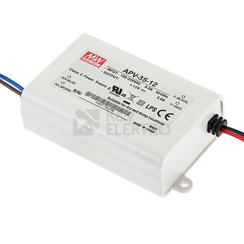 Spínaný síťový zdroj pro napájení LED MEANWELL 12V/3A, 36W. Výstupní napětí: 12V Regulace výstupního napětí: -V Výstupní proud: 3A Skutečný výkon: 36W Vstupní napětí AC: 90..264V Odběr při 230V AC: 0,5A Účinnost: 83% Studený start: 70A Integrované ochrany: Přetížení, přepětí Pracovní teplota: -30..70°C Hmotnost: 0,13kg Rozměry: 84x57x29,5mm