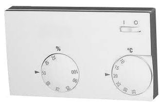 Pokojový hygro-termostat, kombinace nezávislého hygrostatu a termostatu (vysoušení/zvlhčování, vytápění/větrání), rozsah 35...100% vlhkosti, +5...+30°C, výstup: topení 10A/vlhkost 5A, napájení 24...230V, síťový vypínač