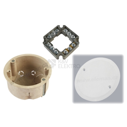 Sada do sádrokartonu UK 68-SK/3 - samozhášivá, průměr 68mm, materiál PVC, montáž do sádrokartonu, obsahuje: krabici, svorkovnici, víčko, vruty