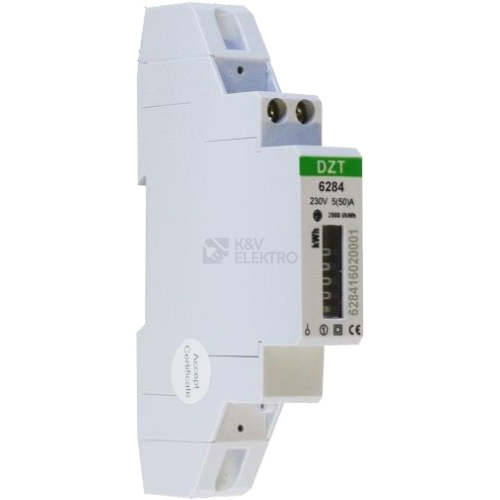 Jednofázový elektroměr na lištu DIN, elektromechanický číselník, úředně ověřený CZ vč. protokolu o ověření stanoveného měřidla, fakturační měřidlo, zpětná brzda