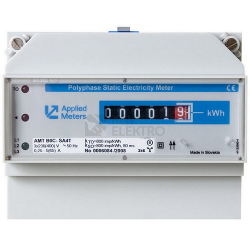 Třífázový jednosazbový elektroměr na lištu DIN, úředně ověřený dle MID, elektromechanický číselník