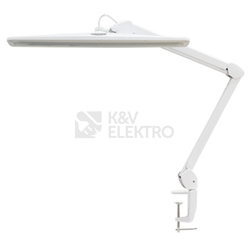 Stolní pracovní úsporná LED lampa se svorkou pro snadné přimontování na stůl či pracovní desku. Volba režimu a pohodlné stmívání pomocí tlačítek na hlavě lampy.Technické parametry: Délka ramena: 90 cm Šířka svítidla: 58 cm Hloubka svítidla: 8 cm Barva: bílá Světelný tok: 1000 lm Teplota bílé: 6500 K Napájení: 230V AC (adaptér 24 V / 0,8 A) Max. příkon: 21 W Zdroj světla: LED