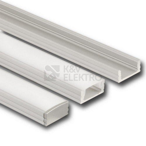Přisazený hliníkový profil pro LED pásky, rozměry průřezu cca 17x8 mm. Součástí je mléčný difuzor, který lze do profilu nacvaknout. Tento profil je určen pro krytí a chlazení LED pásků do šíře 12 mm. Upevnění k podkladu lze provést pomocí montážních úchytů, vrutů, lepidel. K profilu lze zakoupit úchyty a koncovky.