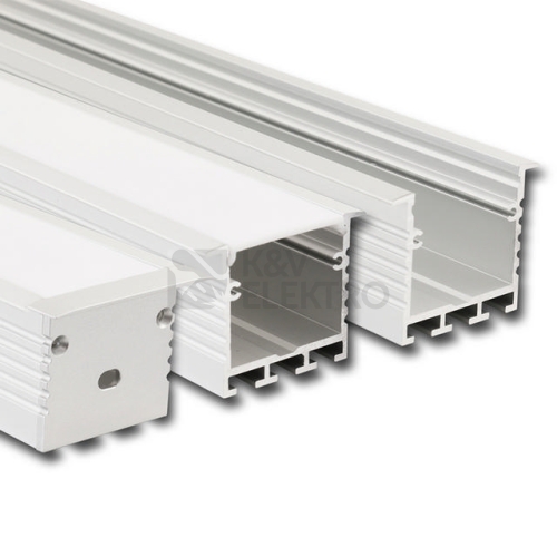 Vestavný hliníkový profil pro LED pásky, rozměry průřezu cca 44x35 mm. Součástí je mléčný difuzor, který lze do profilu nacvaknout. Tento profil je určen pro krytí a chlazení LED pásků do šíře 30 mm, případně dvou LED pásků do šíře 15mm. Pomocí konektorů vhodné pro spojení více profilů za sebou nebo do 90° úhlů. Upevnění k podkladu lze provést pomocí montážních pérek, vrutů, lepidel. K profilu lze zakoupit úchyty a koncovky.
