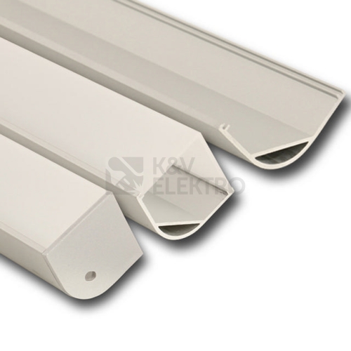 Rohový hliníkový profil pro LED pásky, rozměry průřezu cca 30x30 mm. Součástí je matný difuzor, který lze do profilu nacvaknout. Tento profil je určen pro krytí a chlazení LED pásků do šíře 20 mm. Upevnění k podkladu lze provést pomocí montážních úchytů, vrutů, lepidel. K profilu lze zakoupit úchyty a koncovky.