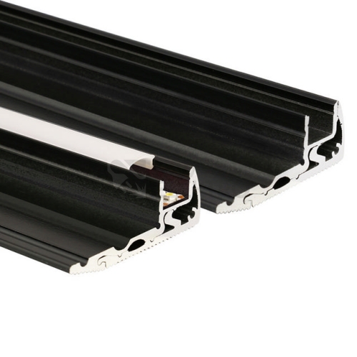 Nášlapný černý hliníkový profil pro LED pásky, rozměry průřezu cca 59x22 mm. Součástí je mléčný difuzor, který lze do profilu nacvaknout. Tento profil je určen pro krytí a chlazení LED pásků do šíře 12 mm. Vhodný pro montáž na schodnice jako protiskluzové provedení. Upevnění k podkladu lze provést pomocí vrutů, lepidel, přičemž jsou upevňovací otvory překryty vrchním profilem. K profilu lze zakoupit koncovky.