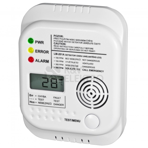 Kupte si digitální detektor CO se zobrazením hodnoty a zvukovou výstrahou. Detektor oxidu uhelnatého byste měli instalovat do všech prostor, kde únik tohoto jedovatého plynu hrozí – tedy například pokud máte karmu, krb či plynový kotel. Oxid uhelnatý není vidět a je bez zápachu, je proto nutné být včas varován před jeho přítomností ve vašem domě. Přístroj také umožňuje zobrazení teploty v místnosti. Autonomní detektor oxidu uhelnatého Elektrobock se zvukovou indikací má životnost 7 let a hlasitost činí 85 dB. Je napájen 3 tužkovými bateriemi, které jsou součástí balení. Stupeň krytí IP20. Vybírejte z naší kompletní nabídky detektorů oxidu uhelnatého. Hodit se vám mohou také požární hlásiče, detektory plynu a nouzová požární tlačítka. O společnosti Elektrobock Elektrobock je česká společnost, která vznikla v roce 1992 a od začátku se úzce specializovala na vývoj a prodej spotřební elektroniky pro domácnost. V sortimentu E1.cz najdete například domovní zvonky Elektrobock, termostaty, časové relé či pohybová čidla. Prohlédněte si kompletní sortiment této společnosti, který prodává náš e-shop.