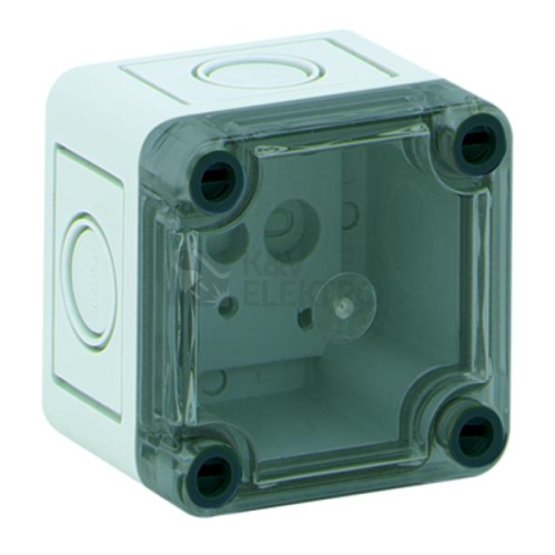 Prázdná skříň, se stupněm krytí IP66, polystyren, Ui=690V AC, Ui=1000V DC, Vnitřní místa pro připevnění, pro standardní instalace ve vnitřním prostoru, Krabice: polystyren, šedá, Víko: polykarbonát, transparenti, Vyrážecí membrány, M16/M20, (4 z boku), Rozměry: 65 x 65 x 57mm