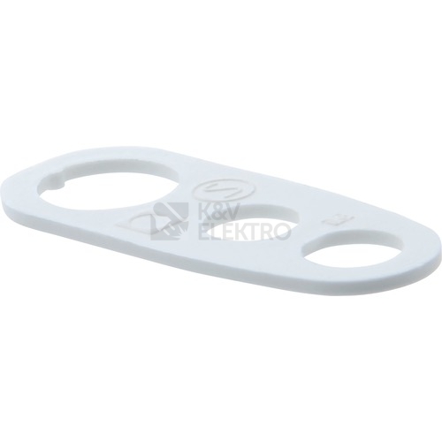Závěs pro uchycení lustrového kabelu k lustrháku s odlehčením kabelového konce pro el. napojení Materiál: plast Barva: bílá Průměr menších otvorů: 6 mm Průměr většího otvoru: 9 mm Rozměr: 18 x 38 mm
