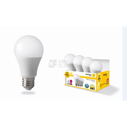 LED žárovky Kanlux 4ks Sada čtyř LED žárovek se šroubovacím závitem a výkonem 9,5W, kterými můžete nahradit klasické 60W žárovky o patici E27. Barva světla je teplá bílá, vhodná do interiérů, protože budí pocit pohodlí a uklidňuje. Žárovka není stmívatelná.