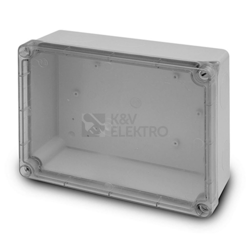 Krabice AcquaBOX 3044 IP55 235x182x95mm, montáž na povrch, průhledné víko na šrouby, hladké bokyPlastová krabice AcquaBOX s hladkými boky v krytí IP55, rychlá a jednoduchá montáž - průhledné (transparentní) polykarbonátové víko na šrouby, odolnost proti mechanickým nárazům IK08, pro nástěnnou montáž (na omítku), barva šedá (RAL 7035), samozhášivý, bezhalogenní UV odolný materiál (ABS), otvory do krabice se provádějí vyvrtáním otvoru a následně se osadí vývodka. Splňuje požadavky norem ČSN EN 60670-1, zkouška žhavou smyčkou 650°C (pro montáž na hořlavé podklady doporučujeme použití nehořlavé podložky), pro rozsah teplot od -25°C do +85°C.