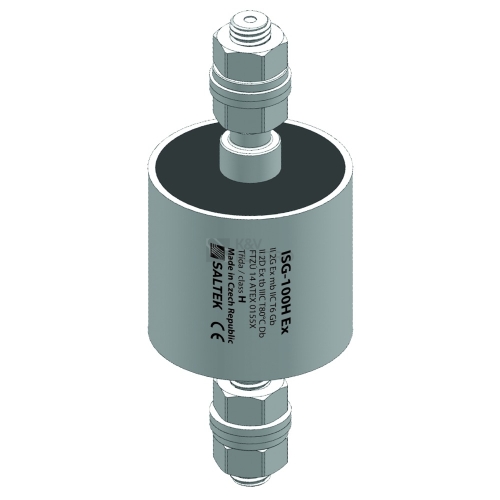 Se dvěma svorníky M8, zalité v nerezovém pouzdru, oddělovací jiskřiště pro výbušné (Ex) prostředí II2G Ex mb IIC T6 Gb a II2D Ex tb IIIC T80 °C Db, pro nepřímé spojení vnějšího systému ochrany s kovovými díly, k instalaci v prostředí s nebezpečím výbuchu v Ex zóně 1 (plyn) nebo 21 (prach)