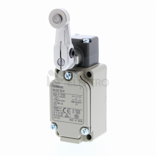 Koncový spínač, páčka s kladkou: R38 mm, přeběh 15±5°, přeběh 90°, DPDB, pg13.5 se zemnící svorkou