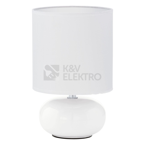 Moderní stolní lampička EGLO Trondio 93046 kombinuje moderní a klasický styl a stane se elegantním doplňkem vaší domácnosti. Jednoduchý oválný design těla lampy z kvalitní keramiky v kombinaci s jednoduchým textilním stínidlem, vykouzlí decentní atmosféru. Lampu Trondio oceníte v ložnici na nočním stolku, ale i v obývacím pokoji jako doplňkové osvětlení. Originální stolní lampu oceníte v klasických, retro i moderních interiérech. Vlastnosti stolní lampy Trondio 93046 Bílá stolní lampa Trondio od firmy EGLO má objímku s paticí E14 (prodává se bez žárovek), je určena pro žárovky s maximálním příkonem 40 W. Stupeň krytí je IP20. Lampička je vysoká 27 cm. Další osvětlení Vybírejte z dalších svítidel EGLO a pořiďte si do nich stylové LED žárovky E14. Koupit si můžete i nástěnná a stropní svítidla od dalších značek. V naší nabídce najdete také koupelnová světla, kuchyňské osvětlení, bodovky, downlighty či lustry. Podívejte se na kompletní nabídku LED osvětlení na našem e-shopu. O společnosti Eglo Rakouská firma EGLO, založená roku 1969, je jedním z předních evropských výrobců interiérových i exteriérových svítidel. Osvětlení EGLO je funkční, elegantní a kvalitní. Při výběru materiálu se budete nejčastěji rozhodovat mezi opálovým sklem, ocelí, textilem a dřevem. V naší nabídce najdete různé typy svítidel EGLO, ať už závěsné lustry EGLO, stolní lampičky, venkovní stropní svítidla či světla do koupelny EGLO. Oblíbené jsou řady EGLO Pandella, EGLO Optica či EGLO Fueva. Podívejte se na celý sortiment EGLO v naší nabídce.