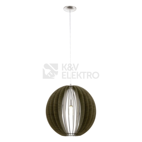 V závěsném světle EGLO Cossano 94636 se snoubí originalita s klasickými materiály. Dřevo působí luxusně a originální zpracování zároveň poskytuje dostatek světla. Závěsné svítidlo je tím pravým prvkem, aby proměnilo váš soukromý prostor ve stylový moderní domov. Lustr je svým rozměrem vhodný nad jídelní stůl, ale i jako dominantní prvek vašeho obývacího pokoje. Aby byl dojem celistvý, inspirujte se dalšími světly z kolekce EGLO Cossano. Patice E27 max 60W vám umožní vybrat si světelný zdroj. Ke svítidlu doporučujeme pořídit kvalitní žárovky. Vybírat můžete ze širokého sortimentu úsporných LED žárovek E27 nebo halogenových žárovek s paticí E27. Podívejte se i na další svítidla s objímkou E27.