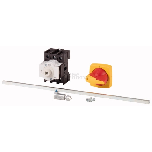 Hlavní spínač, Sortiment: Hlavní vypínač, Přepínač údržby, Vypínače pro opravy, Označení typu: P1, Funkce STOP: Funkce nouzového vypnutí, S červenou otočnou ovládací pákou a žlutou objímkou, poznámka: S kovovou osou pro hloubku rozváděčové skříně 400 mm, Informace k rozsahu dodávky: Pomocný kontakt nebo neutrální vodič lze namontovat dodatečně., 3-pólové, Možnost uzamčení: Uzamykatelný v poloze 0, Stupeň krytí: Vpředu IP65, Provedení: Zadní montáž, Výkon motoru AC-23A, 50 - 60 Hz 400 V: P = 15 kW, Jmenovitý trvalý proud: Iu = 32 A, Normy a ustanovení: ČSN EN 60947, VDE 0660, ČSN EN 60204, Vypínače podle normy ČSN EN 60947-3