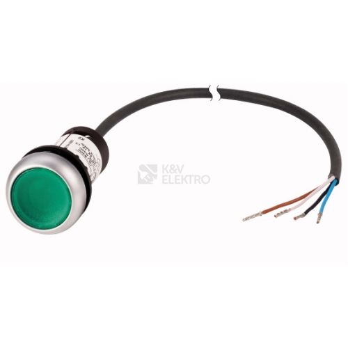 Prosvětlená ovládací hlavice tlačítka, RMQ compact solution, Kompletní přístroj, Konstrukční typ: plochá, bez aretace, Typ připojení: Kabel (černý) s otevřeným koncem, 4-pólový, Délka kabelu: 3.5 M, Barva LED: zelený, Tlačítkový výplň: zelený, Panel s tlačítky nepopsané, Jmenovité provozní napětí LED: 24 V AC/DC, Popis: bez, Stupeň krytí: IP66, IP67, IP69K (čelní), IP65 (zadní), Pierścień czołowy tytanowy, Připojení na SmartWire-DT: ne, S = spínací kontakt: 1 spínací kontakt, Normy a ustanovení: ČSN EN 60947-5-1, VDE 0660