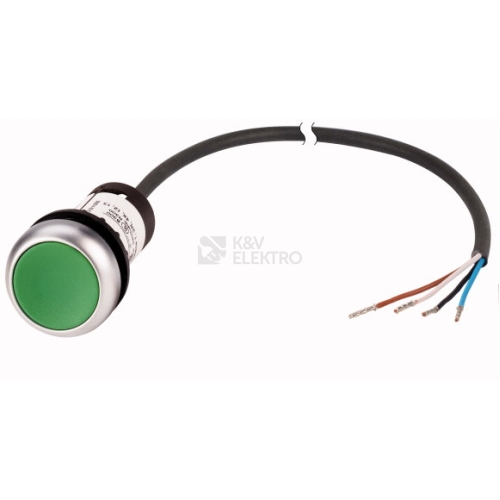 Tlačítko, RMQ compact solution, Kompletní přístroj, Konstrukční typ: plochý, bez aretace, Typ připojení: Kabel (černý) s otevřeným koncem, 4-pólový, Délka kabelu: 1 M, Tlačítkový výplň: zelený, Panel s tlačítky nepopsaný, Popis: bez, Stupeň krytí: IP66, IP67, IP69K (čelní), IP65 (zadní), Pierścień czołowy tytanowy, Připojení na SmartWire-DT: ne, S = spínací kontakt: 1 spínací kontakt, Normy a ustanovení: IEC/EN 60947-5-1, VDE 0660