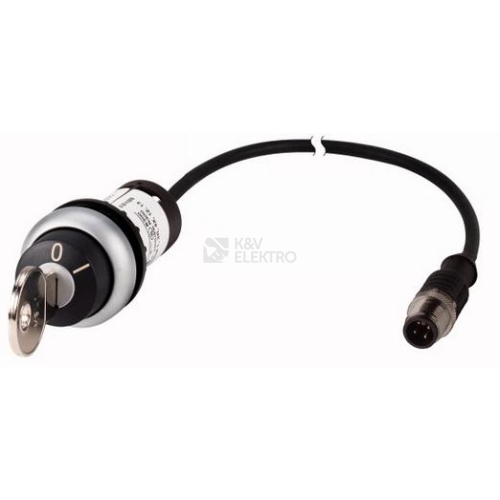 Přepínač s klíčem, Sortiment: RMQ compact solution, Kompletní přístroj, s aretací, Kabel (černý) se zástrčkou M12A, 4-pólový, Délka kabelu: 1 M, nelze používat pro systémy univerzálního klíče, 2 polohy, Zámkový systém: MS1, I, Stupeň krytí: IP66 (čelní), IP65 (zadní), Pierścień czołowy tytanowy, Připojení na SmartWire-DT: ne, S 1 klíčem, Normy a ustanovení: ČSN EN 60947-5-1, VDE 0660, Stupeň krytí: IP66 (čelní), IP65 (zadní)