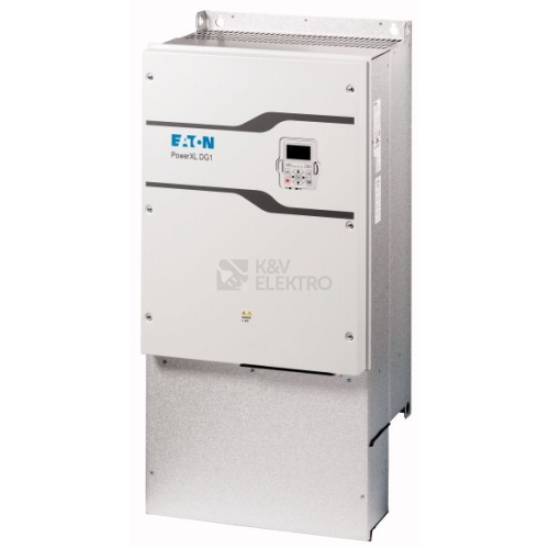 Frekvenční měnič, Označení typu: DG1, Jmenovité provozní napětí: Ue = 400 V AC, 3fázový, 480 V AC, 3fázový, 500 V AC, 3fázový, Výstupní napětí při Ue: U2 = 400 V AC, 3fázový, 480 V AC, 3fázový, 500 V AC, 3fázový, Síťové napětí (50/60Hz): ULN = 380 (-15%) - 500 (+10%) V, Jmenovitý pracovní proud při přetížení 150 %: Ie = 245 A, Upozornění: Jmenovitý provozní proud při spínací frekvenci 1 - 10 kHz a teplotě prostředí +50 °C pro přetížení 150 % a +40 °C pro přetížení 110 %., Jmenovitý pracovní proud při přetížení 110 %: Ie = 310 A, Upozornění: Cyklus přetížení po 60 s každých 600 s, Přiřazený jmenovitý výkon motora Upozornění: pro normální čtyřpólové třífázové asynchronní motory s vnitřním a vnějším chlazením s počtem otáček 1500 min-1 při 50 Hz nebo 1800 min-1 při 60 Hz, Cyklus přetížení po 60 s každých 600 s, při 400 V, 50 Hz, Přiřazený jmenovitý výkon motora Přetížení 150 %: P = 132 kW, Přetížení 110 %: P = 160 kW, Přetížení 150 %: IM = 234 A, Přetížení 110 %: IM = 283 A, Přiřazený jmenovitý výkon motora Upozornění: při 500 V, 50 Hz, Přiřazený jmenovitý výkon motora Přetížení 150 %: P = 160 kW, Přetížení 110 %: P = 200 kW, Přetížení 150 %: IM = 224 a, Přetížení 110 %: IM = 279 a, Přiřazený jmenovitý výkon motora Upozornění: při 480 V, 60 Hz, Přiřazený jmenovitý výkon motora Přetížení 150 %: P = 200 HP, Přetížení 110 %: P = 250 HP, Přiřazený jmenovitý výkon motora Přetížení 150 %: IM = 240 A, Přetížení 110 %: IM = 302 A, Stupeň krytí: IP21/NEMA1, Rozhraní/provozní sběrnice (integrovaná): Modbus RTU, Modbus TCP, BACnet MS/TP, Ethernet IP, Komunikační karta (volitelně): PROFIBUS, CANopen®, DeviceNet, SmartWire-DT, Vybavení: Odrušovací filtr, dodatečná ochrana plošných spojů, víceřádkový grafický displej, Brzdový střídač, Meziobvodová tlumivka, Konstrukční velikost: FS6, Normy a ustanovení: Všeobecné požadavky: ČSN EN 61800-2, Požadavky EMC: ČSN EN 61800-3, Požadavky na bezpečnost: ČSN EN 61800-5, IEC/EN 60950-1: SELF