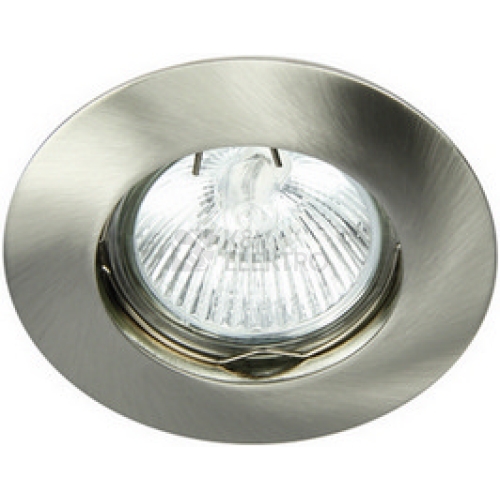 Bodovka vestavná do podhledu pevná ,v barvě matný chrom, pro halogenové žárovky typu MR-16 max. 50W (kód GXZH017), nebo LED 60 SMD MR16 4W-WW (kód GXLZ029).Žárovka není součástí dodávky. Pro žárovky MR-16/12V se použije objímka GU5,3, která je součástí dodávky. Žárovka se uchytí do kovového kroužku pomoci pružinky. Určeno k montáži na normálně hořlavé povrchy.