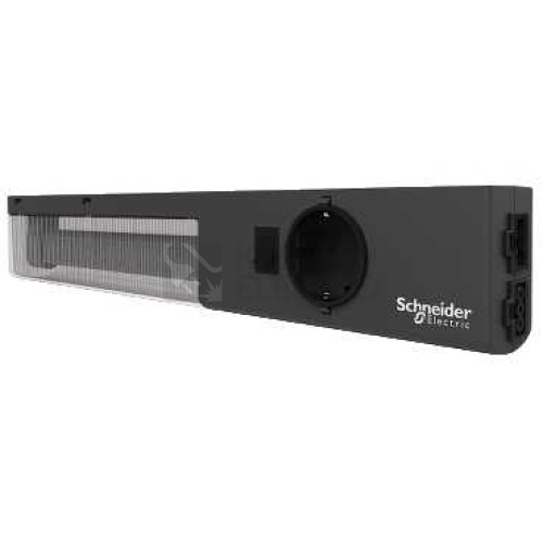 LED svítidlo se zásuvkou Schuko. 230 V stř., 50 Hz nebo 60 Hz. Integrovaná LED 640lm, 4000k, 2500h. Vestavěný spínač. 372 x 63 x 40 mm. Kabel rychlého konektoru není součástí dodávky. Montážní držák, DIN lišta, kovové součásti. Upevňovací režim nacvaknutím, magnetické upevnění, šrouby. Vyrobeno v PC (UL94V-0). ČERNÁ RAL 9005. Ochrana IPI20, třída el. izolace 2.