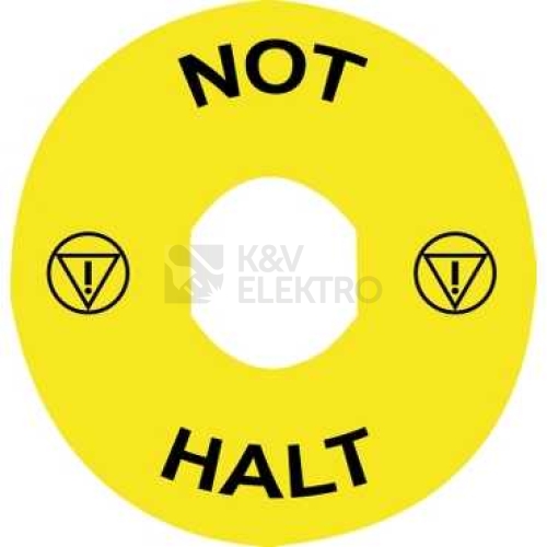 Štít. s popisem Ø60 pro nouz. zastav.-NOT-HALT/logo ISO13850. řada výrobků: Harmony XB4, Harmony XB5 - typ produktu nebo součásti: označený štítek - příslušenství / náhradní díly: štítek, příslušenství pro označení - příslušenství / umístění samostatných dílů: sada pro visací zámek ZBZ3605 - rozměry štítku: Ø 60 mm - uživ. jazyk: Němčina. Výhody: .. Aplikace: .. Výhody: Tlačítka Harmony jsou ideální pro aplikace vyžadující dobrou odolnost proti chemickým přípravkům a/nebo dvojitou elektrickou izolaci.... Aplikace: .. Výhody: .. Aplikace: ..