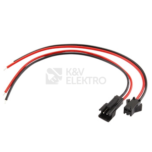 Sada napájecích kabelů 2pin, vidlice + zásuvka pár, se zámkem, 2x15cmTechnické parametry: Pracovní napětí: max. 24 V DC Proudové zat ížení: max. 5 A Délka: 2x 15 cm