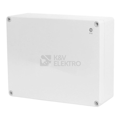 Krabice 68230 IP65 313x253x115mm, montáž na povrch, plné víko, hladké boky, plastové šrouby.Plastová krabice SolidBOX s hladkými boky v krytí IP65 a zesílenou konstrukcí, rychlá a jednoduchá montáž - plné šedé víko na šrouby, odolnost proti mechanickým nárazům IK07, pro nástěnnou montáž (na omítku), barva šedá (RAL 7035), samozhášivý, bezhalogenní UV odolný materiál, otvory do krabice se provádějí vyvrtáním otvoru a následně se osadí vývodka. Splňuje požadavky norem ČSN EN 60670-1, zkouška žhavou smyčkou 650°C (pro montáž na hořlavé podklady doporučujeme použití nehořlavé podložky), pro rozsah teplot od -40°C do +80°C.