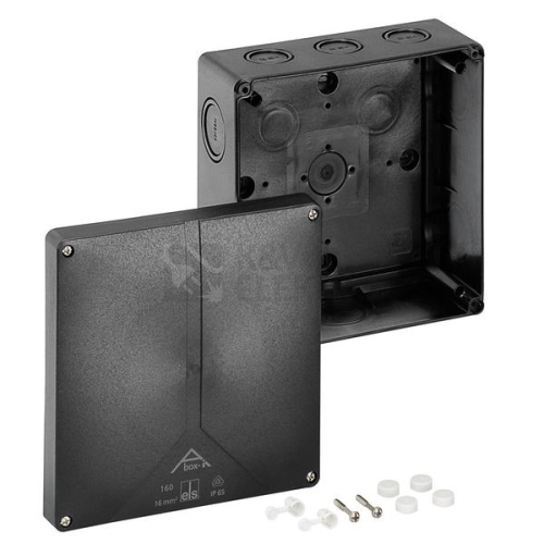 Spojovací krabice, se stupněm krytí IP65, Jmenovitý průřez 16mm², Ui=690V AC, Certifikováno podle VDE (DIN EN 60670-1/-22 (VDE 0606-1/-22)), DLG (odolnost vůči čpavku), DNV (Třída: Lodě & offshore zařízení), Vyrážecí membrány, M20/M25/M32/M40, (2 ze zadu, 10 z boku), Vnitřní místa pro připevnění, pro instalace v průmyslovém prostředí a chráněném venkovním prostředí, černá, bez svorek, Rozměry: 180 x 180 x 91mm, Přiložené příslušenství: 1 Plombovací souprava