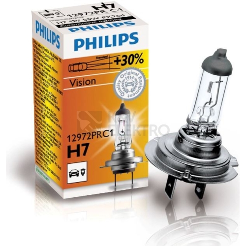 Zajistěte bezpečný provoz vašeho auta pořízením kvalitních halogenových autožárovek H7 Philips Vision homologovaných pro provoz na veřejných komunikacích. Autožárovky Philips Vision nabízejí skvělý poměr ceny a výkonu a přinášejí i větší bezpečí, pohodlí i delší životnost. Technologie UV-block chrání moderní čiré světlomety před škodlivým zářením. Křemenné sklo snižuje riziko prasknutí vlivem rozdílných teplot a umožňuje dosažení vyššího tlaku uvnitř autožárovky pro vyšší světelný výkon. Díky funkci zvýšeného tlaku uvnitř žárovky dokáže křemičité sklo UV produkovat výkonnější světlo, což vám pomůže dobře řídit bez ohledu na to, jak tmavý terén před vámi je. Autožárovka Philips Vision H7 s paticí PX26d je vhodná pro potkávací, dálková a mlhová světla. Její výkon činí 55 W a napětí 12 V. Životnost homologované žárovky H7 dosahuje 350 hodin. Podívejte se na další halogenové autožárovky H7 i žárovky H4, které se dávají do světlometů jako potkávací a jednodušší světla. Podívejte se na další halogenové autožárovky v našem sortimentu. Vybírat můžete i z úspornějších LED žárovek do aut, xenonových výbojek, i klasických autožárovek. O firmě Philips Světoznámá společnost Philips & Co. byla založena v roce 1891 v nizozemském Eindhovenu s cílem uspokojit rostoucí poptávku po žárovkách, která nastala v důsledku komercionalizace elektřiny. V současnosti nabízí Philips široké spektrum vysoce kvalitních produktů z oblasti elektroniky a elektrotechniky. V našem sortimentu naleznete například LED žárovky Philips, halogenové žárovky, svítilny, zářivky, ale i stropní a nástěnná svítidla, podhledová svítidla či kuchyňské zářivky a osvětlení. Prohlédněte si náš kompletní sortiment od firmy Philips.