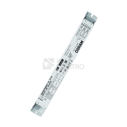 Výhody produktu: Dlouhá životnost světelného zdroje. Žádné nepříznivé dopady při častém zapínání a vypínání. Automatický restart po výměně světelného zdroje. Perfektní zapínání světelného zdroje pro instalace s pohybovými čidly. Systém certifikovaný podle VDE/VDE pro EMC. Velmi vysoká energetická účinnost díky odpojovací technologii. Vlastnosti produktu: Napájecí napětí: 220…240 V. Síťové napětí: 198 – 264 V. Kmitočet: 50 Hz | 60 Hz. Zapnutí světelného zdroje s optimálním předehříváním vlákna. Index energetické účinnosti EEI: A2. Automatické vypnutí vadných světelných zdrojů a zdrojů na konci života (EoL T.2). Provoz světelného zdroje: po EN 60929. Bezpečnost: podle EN 61347-2-3. Druh použití: Společné kanceláře, chodby a skladovací prostory. Veřejné budovy. Světelné pásy. Vhodné pro nouzové osvětlení (provoz na stejnosměrný proud). Vhodné pro svítidla třídy ochrany I. Modernizace stávajících systémů.