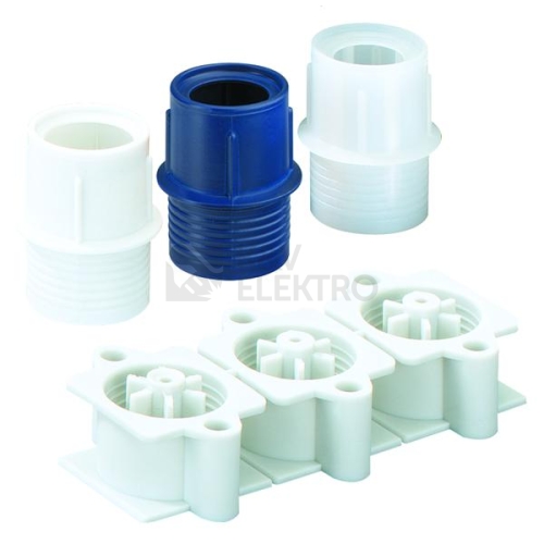 Trubkové hrdlo, se spodní částí, k uchycení různých průměrů trubek, dimenzované izolační napětí: 400V AC, bez obsahu halogenů, Upevnění lepením nebo hřebíky, Rozsah těsnění M20, vhodný pro podpěrné vzpěry, Rozměry: 35 x 49 x 40mm