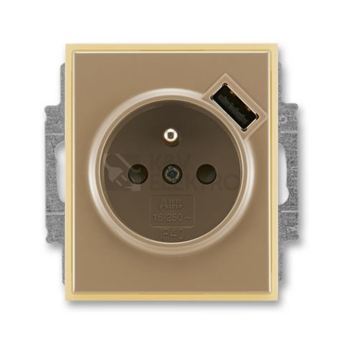 Zásuvka 1násobná s kolíkem, s clonkami, s USB nabíjením, kávová/led. opálová