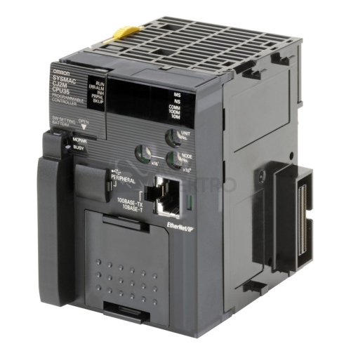 Modulární PLC automat, CPU jednotka, max. počet I/O bodů: 2 560, max. počet I/O jednotek: 40, programová kapacita: 20k, kapacita datové paměti: 64 k, rychlost provádění logických operací: 40 ns, vestavěné funkce: USB + EtherNet/IP, slot pro volitelnou sériovou komunikaci, šířka: 62 mm, spotřeba proudu pro 5VDC: 700 mA
